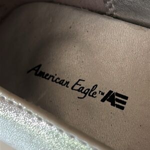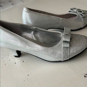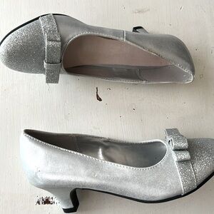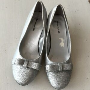 American Eagle Outfitters low heel silver/metallic bow girls shoes size 3.5