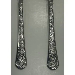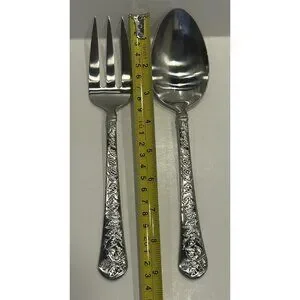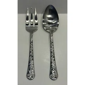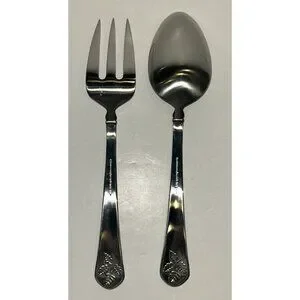 Yamazaki Gear TAPESTRY BOUQUET Serving Spoon and Fork Set Preowned Nice!