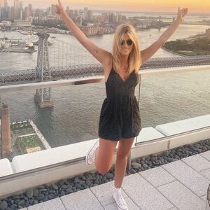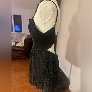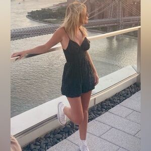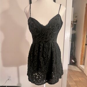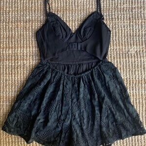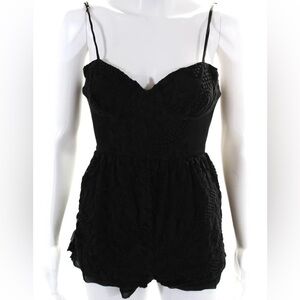 Elegant black lace romper. Sleeveless design. Perfect for summer outings.