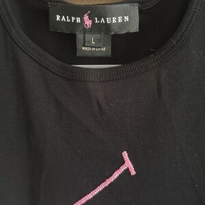 Ralph Lauren Black T-Shirt with Pink Pony Logo Embroidered