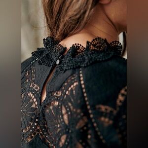 Sezane Bianca Blouse, Black Lacy Size 40