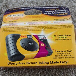 Kodak Power Flash one time-use camera. New in opened box, inner packet still sealed. 27 exposures. Vintage - sold in stores before 2005. Please note - box states develop before 03/2007 (so film will most likely no longer work). Please see photos above for more details.