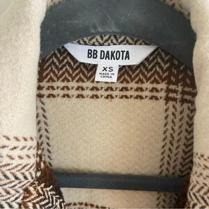 BB Dakota Lucky Lumber Jacket in Tan. - size XS 58% recycled poly 32% acrylic 5% wool 3% viscose 2% nylon. Hand wash cold. Front button closure. Breast pockets. Side seam pockets. Buttoned cuffs. Imported. BBDA-WO831. BK300334. BB Dakota is an eclectic shake up of the modern girl. We believe that fashion is about self-expression and taking risks, but more importantly, its about having fun. We design for the rule-breakers, the dreamers? BB Dakota supports the moment.