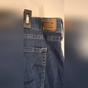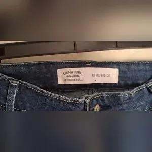 Signature Levi Strauss Mid Rise Bootcut Blue Denim Jeans Sz 35 X 32 Western Rode