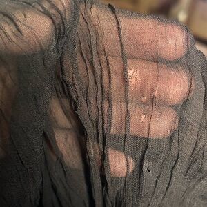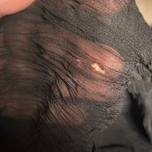 Due to the nature of the fabric (crinkled/wrinkled) the holes/repairs are a little less obvious.