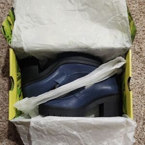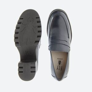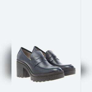 Fly London Tokyo 803 Lugged Sole Leather Loafer Heels Dublin Denim Sz 39