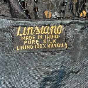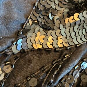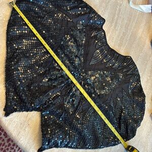 Vintage LINSIANO black sequined & beaded butterfly wing top. Has a spectacular Butterfly in sequins on front & back; bottom & sides have shape of wings. V-neck, pullover.
