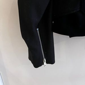 The Kooples warm wool jacket coat, sold out everywhere. Double breasted button fastening, zippers. Long detachable sleeves. 75% wool, 25% polyamide, fully lined. Measurements flat: underarms 20”, length 24”. Size FR 36, US S, oversized fit. Never worn with tags