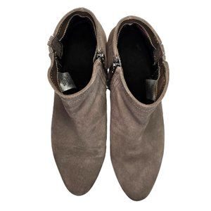 Blondo Valli Taupe Suede Waterproof Heeled Side Zip Ankle Bootie Shoes Sz 9.5
