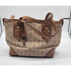 VTG FOSSIL Women's Hand Bag Purse Brown Tan Logo Key Leather Canvas