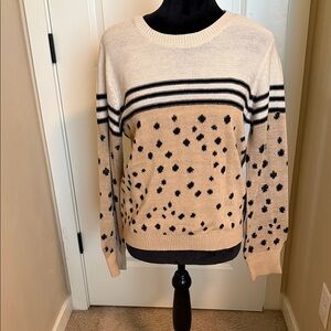 Stay cozy and stylish with this women's cream sweater featuring a chic black pattern. Perfect for any casual outing.