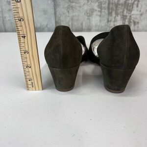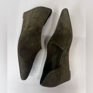 Vince Barolo Olive Green Suede Wedge Heels Size 10. These shoes are in new condition. Please do your own research regarding brand sizing and style to ensure a great fit. Please see all photos for details and feel free to ask questions!