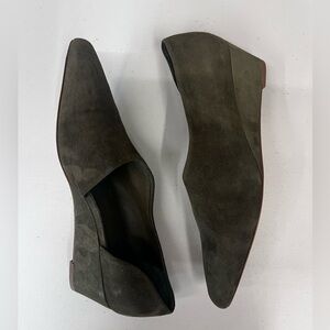 Vince New Barolo Olive Green Suede Wedge Heels Size 10