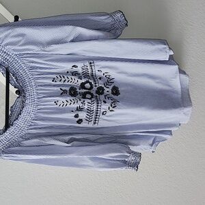 Beautiful light blue stripes with dark blue embroidery