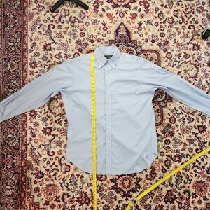 Ralph Lauren Men's Non-Iron Dress Shirt 15.5, 32/33. In good condition. Button-down collar. Blue color. 100% cotton. Green label. Dimensions as shown.