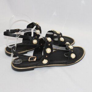Extreme by Eddie Marc Black Sandals with Golden and Faux Pearl Accents