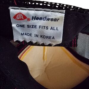 Elevate your style with this new sleek black, red and white cap. Perfect for any casual outing. Has a cute text. Adjustable