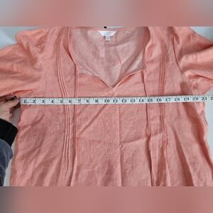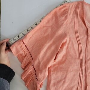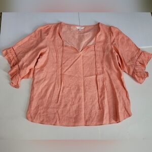 Lauren Conrad Salmon Colored Linen Tie Front V Neck 3/4 Sleeve Shirt