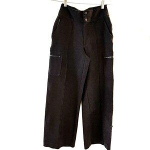 Stretch High rise Wide leg Cargo style zipper pockets Black/charcoal gray heathered fabric 62% viscose / 28% nylon / 6% polyester / 4% spandex