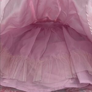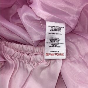 Elegant pink dress with floral pattern. Features a bow on the front. Perfect for formal occasions.