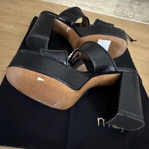 Chic black sandals by Maje. Features dazzling crystal buckles. Perfect for a fashionable touch.