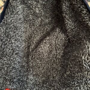 Gerry jacket featuring navy camo pattern. Bright orange interior adds contrast. Includes hood and zippered pockets. Bought from Costco. Excellent condition.
