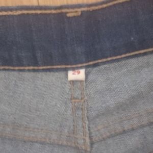 Classic Levi's jean shorts. Medium blue denim with rolled cuffs.