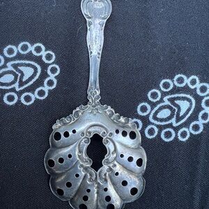 Beautiful vintage ornate silver spoon with intricate detailing. Perfect for collectors or as a decorative piece.