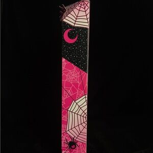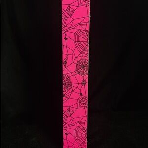 A rare and stylish collectible Barbie from 2008! Barbie rocks a glittery black-and-pink spiderweb gown with matching witch hat, belt, and accessories. A spooky-fun addition to any Barbie collection or a great seasonal display piece.