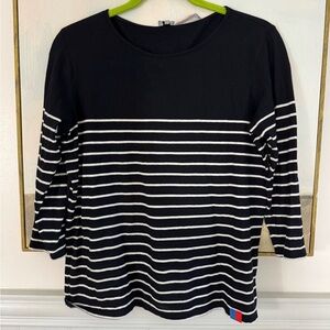 KULE Black And White Striped Blanche Shirt Quarter Sleeve Size Small