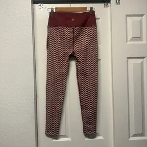 ⭐️Chic burgundy leggings with a chevron pattern. Comfortable and stylish for everyday wear. Love the non-slip inner lining at waistband!