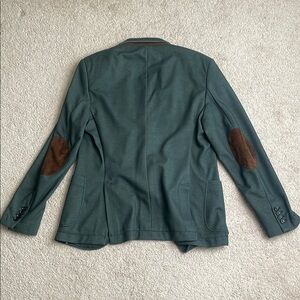This Zara blazer in a deep green shade features a contemporary design with a notched lapel, ideal for casual to business casual settings. Its unstructured silhouette offers a relaxed fit, complemented by a partially lined interior for added sophistication.