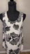 Stylish sleeveless top with a black floral pattern on a white background. Perfect for casual or business casual outings.