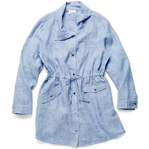 Wear it buttoned up with heels and sleek pants, or keep it unbuttoned and casual with your favorite tee and shorts. This cross dye linen jacket is a master of versatility, thanks to its beautiful colors and utility design—not to mention a plethora of pockets and a drawstring detail that beautifully cinches at the waist.