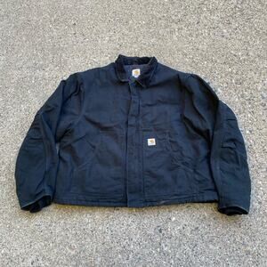 Vintage 90s Carhartt Brown Duck Canvas Red Quilt Lined Barn Chore Coat Jacket
