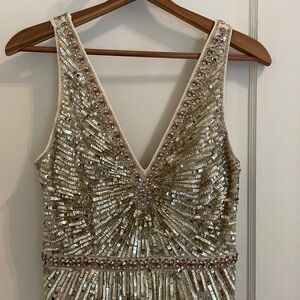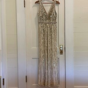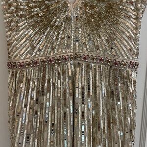 SOLD. New Mac Duggal Gold Sequin Embellished Evening Gown size 4