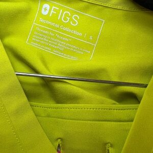 Lime green scrub top by Figs. V-neck design with a sleek look.