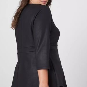 NEW! LANE BRYANT Black Illusion Pullover 3/4 Sleeve Peplum Knit Top 26/28.