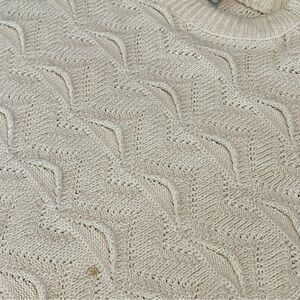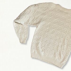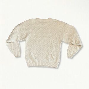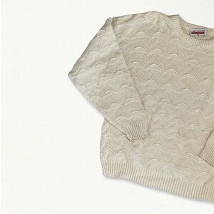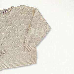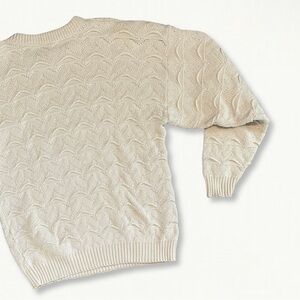 Vintage 80s 90s Checkpoint 3D Textured Chunky Knit Crewneck Sweater Cream, Unisex, Tag Size XL, some faint, hard to notice spots on from and sleeve—shown in last photos