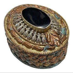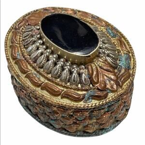 Ring Box Brass and Copper Embellished with Black Oval Stone/not certain of the type.