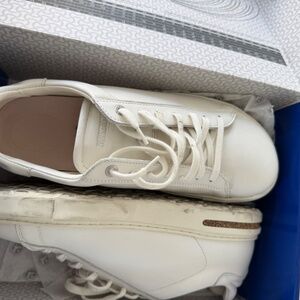 Barely worn, immaculate and in original box, pair of men's white Birkenstock sneakers