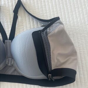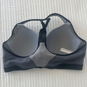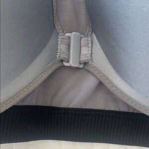 Experience comfort and support with this stylish zipper front sports bra. Perfect for workouts or everyday wear, it features a sleek black and gray design. Enjoy the blend of functionality and fashion.