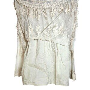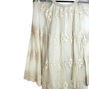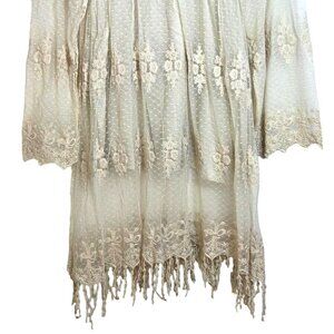 Contrast Cream Floral Embroidery Lace Long Sleeve Boho Cowgirl Mini Dress Medium