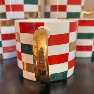 Elevate your coffee experience with this set of 6 mugs. Featuring a vibrant red, green, and gold design, these mugs add a touch of elegance to your home dining collection. The gold handles provide a luxurious feel, perfect for enjoying your favorite brew.