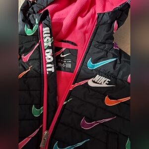 Nike Kids' Black Puffer Jacket with Multicolor Swooshes