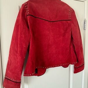 Chic red genuine suede blazer by Scully. Features stylish stud accents. Ideal for adding flair to any outfit.