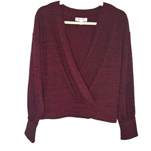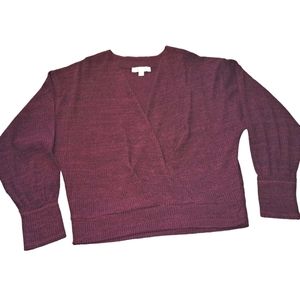 She & Sky Burgundy V Neck Faux Wrap Style Sweater Size Large