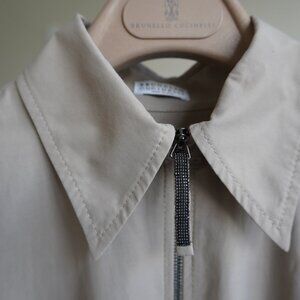Brunello Cucinelli Techno Cotton Dress Monili Zip Pull Maxi Shirtdress Size XXS