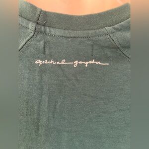 Dark Teal top with subtle Spiritual Gangster embroidered script in white.
