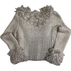 Stay cozy and stylish with this unique Twiggy cardigan. Crafted with a blend of acrylic and wool, this medium-sized sweater offers warmth and comfort. The textured knit and looped collar and cuff details add a touch of whimsy to your wardrobe. Perfect for layering during colder months, this black and White cardigan sweater is a versatile piece that can be dressed up or down.